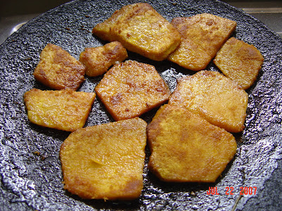 Note: "Thankyou" foodies for letting me know that this vegetable is Elephant Yam. Here is a picture for people who do not know what it is.Pan fried method: